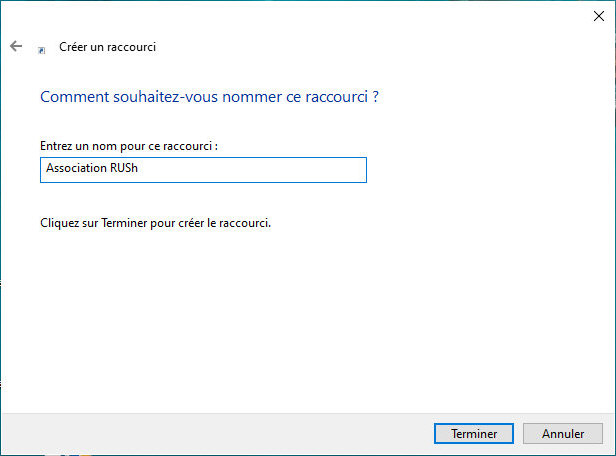 Suivant et donnez un nom à votre raccourci :