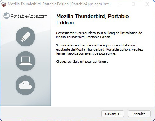 Ici, Thunderbird va nous servir d’exemple de gestionnaires de courrier portable. Si vous souhaitez l'installer, cliquez sur