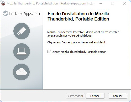 L'installation est terminée. Vous pouvez déplacer le dossier ThunderbirdPortable où vous voulez et commencer à