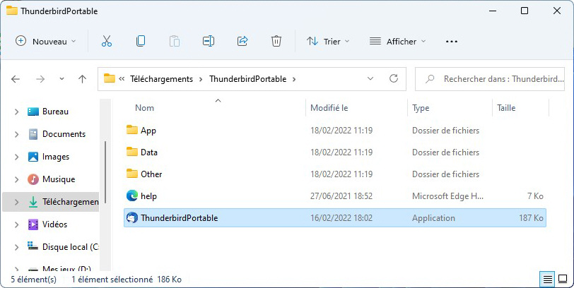 Un dossier ThunderbirdPortable a été créé. Vous pouvez maintenant ouvrir l'application ThunderbirdPortable :