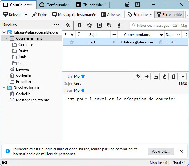 Donc, en gros, la gestion de votre courrier sera similaire à l'exemple qui suit basé sur Thunderbird portable.