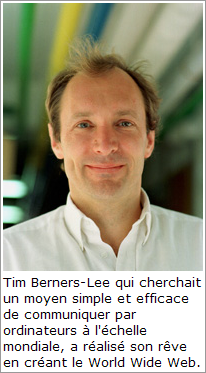 Ce que l'on nomme Hyper Text ou en français hypertextes, ce sont ici simplement des pages (comme celle-ci), dans lesquelles il y a des liens constitués d'adresses vers des ressources ou vers d'autres pages. Et ce qu'on nomme localisateur représente ces adresses dans le Web. Ceci étant dit, on ne peut pas parler du Web sans rendre hommage à son créateur Tim Berners-Lee, un informaticien qui travaillait au CERN et qui, à la fin des années 1980, à mis au point avec l'aide de Robert Cailliau les protocoles nécessaires à l'échange de documents hypertextes via le réseau Internet.