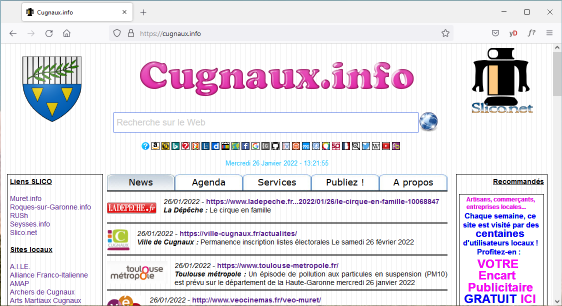 où l'on retrouve la fenêtre du navigateur Firefox, le contenu correspondant à la page d'accueil de Cugnuaux.info et, intégré au contenu, le formulaire d'un moteur de recherche :