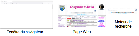 Les navigateurs Ces précisions sémantiques étant données, quand vous allez sur internet avec votre ordinateur, c'est bien sur le Web que vous vous rendez. Et, pour cela, vous utilisez une application particulière qui a pour nom un navigateur. En voici une liste : Ici dans l'ordre, les logos d'Edge, FireFox, Chrome, Opéra, Safari, Netscape, Seamonkey, Maxthon, Internet Explorer, TOR et Brave. Pour les exercices, ExoWeb s'adapte à votre navigateur s'il fait partie de ces trois-là. Sinon, c'est le navigateur Edge proposé nativement sur les PC sous Windows qui est utilisé. Dans ce cas, les présentations pourront être plus ou moins différentes des vôtres, mais les principes seront très souvent les mêmes. Pour lire cette page, vous utilisez donc un navigateur. De même que beaucoup confondent Internet et le Web, une confusion est souvent faite entre le navigateur, les pages Web et le moteur de recherche dont on parlera un peu plus tard. Pour clarifier les choses, une analogie peut être faites avec Word par exemple :