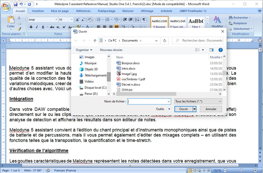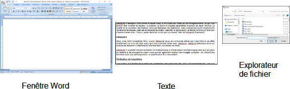 Sur cette image, vous faites bien la différence entre la fenêtre du logiciel Word, le texte proprement dit et l'explorateur de fichier qui va vous permettre entre autres d'ouvrir un nouveau document.
