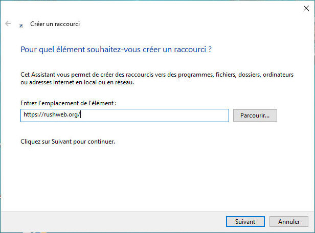 Cliquez sur Suivant et donnez un nom à votre raccourci :