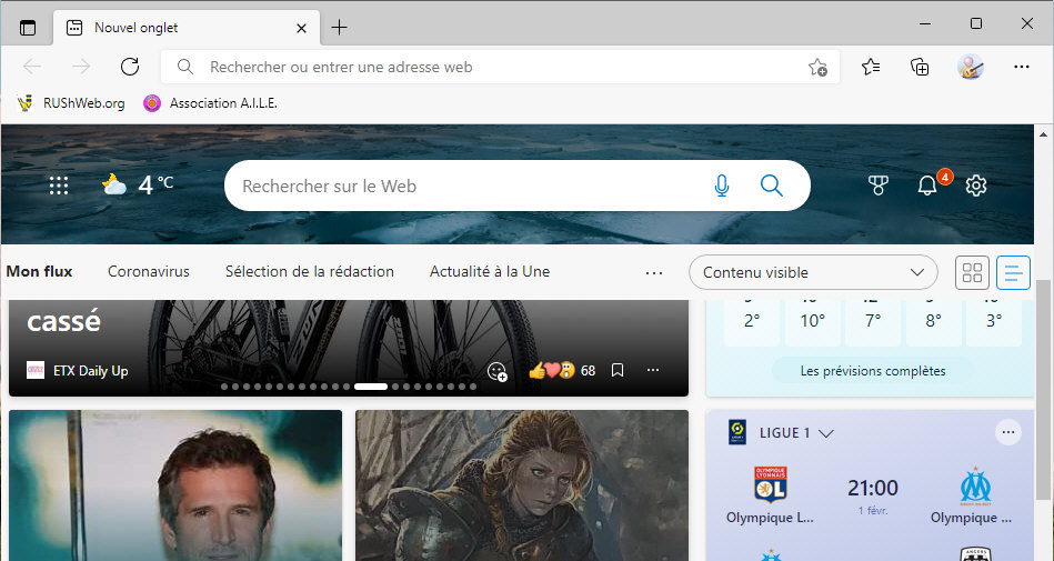 On y retrouve des actualités, un accès aux mails Orange, des informations sur les produits et services, un formulaire de recherche, etc. Cette page peut aussi être celle proposée par votre système. Par exemple, Microsoft pourra vous proposer cette page d'accueil quand vous ouvrez le navigateur Edge :