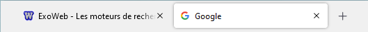 Vous avez sans doute remarqué qu'au fur et à mesure de la saisie de votre requête, le moteur de recherche vous propose de la compléter en choisissant une ligne dans un menu déroulant. Si une ligne du menu correspond, vous n'avez plus qu'à cliquer ! Tout cela est simplissime a priori, parce qu'il y a quand même pas mal de pièges à éviter. C'est ce qu'on va voir dans les exercices suivants. Avant de les faire, vous allez ouvrir un nouvel onglet sur un moteur de recherche et ainsi pouvoir passer de la page d'ExoWeb à la page du moteur de recherche, et vice-versa, d'un simple clic sur les onglets.
