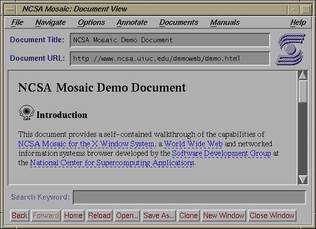 Cela peut donc aller d'une simple question posée dans un forum à la plus grosse application Web imaginable. C'est ce que l'on va passer en revue dans les pages qui suivent. Mais, commençons par le commencement. L'un des tout premiers navigateurs Web à avoir été largement adopté est sans conteste Mosaïc, qui a fait son apparition en 1993 :